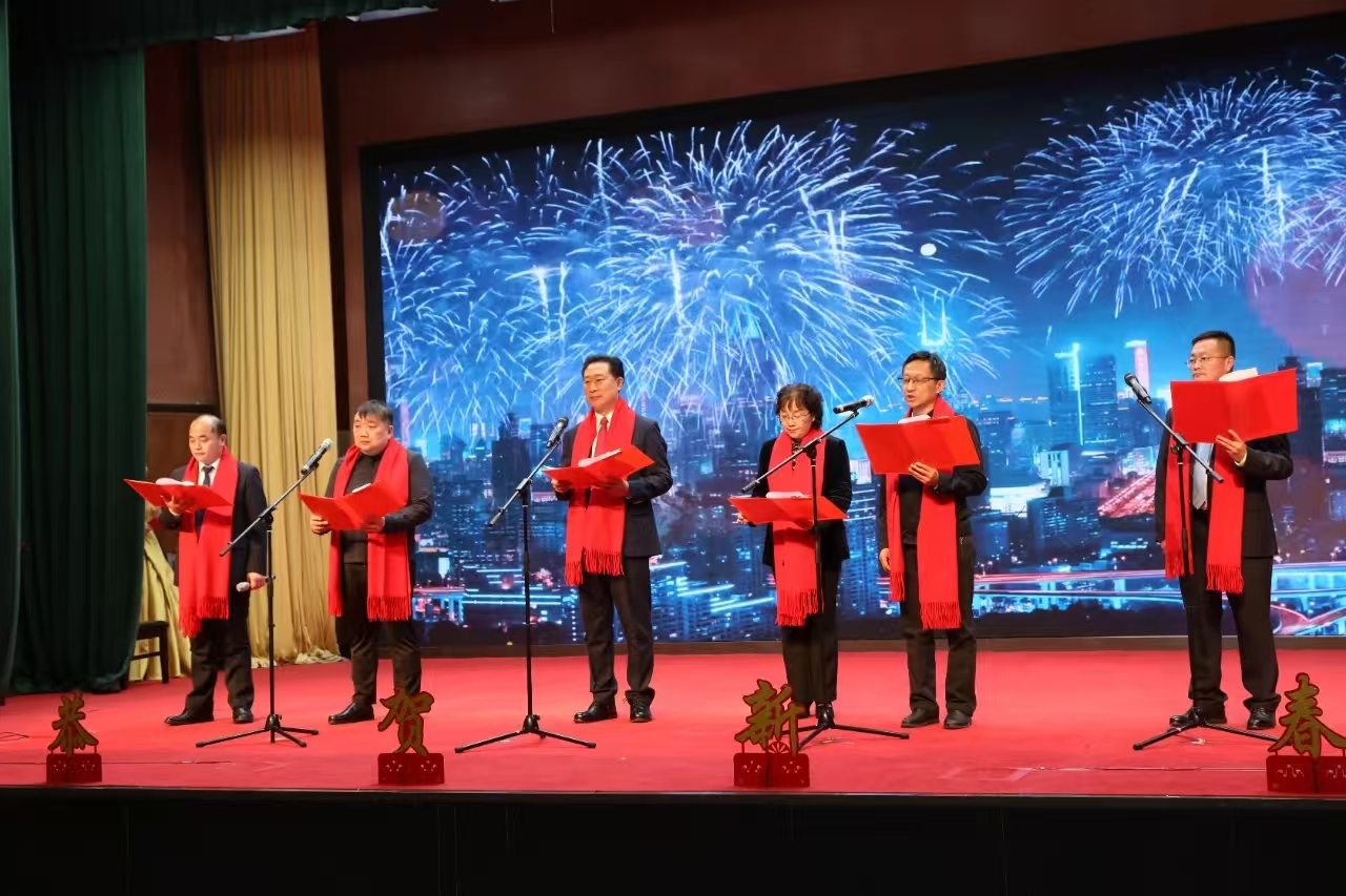 韩德民院士带领新疆国际医疗中心的职工代表,共同朗诵迎新春贺词,向一直以来支持中心发展的社会各界,向筹建一线的干部职工表达了衷心的感谢。