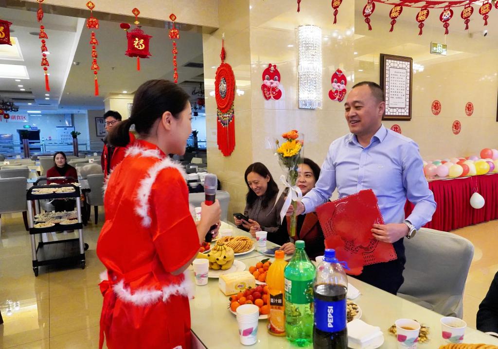凯赛尔·阿不都克热木向大家表达了新春的祝福,对全体干部职工不畏困难、辛勤付出,加快推进项目建设的精神表示赞誉,鼓励大家要把握时代机遇,勇于开拓创新,为服务“一带一路”建设作出新的更大贡献。