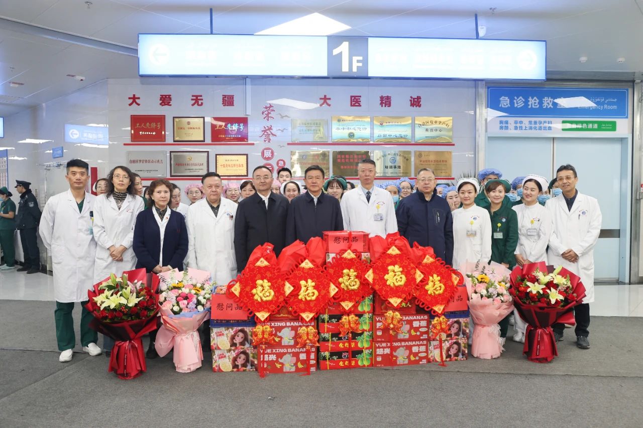 校党委书记柴林,校党委常委、副校长木胡牙提·乌拉斯汉慰问第四附属医院(第四临床医学院)在岗医护人员