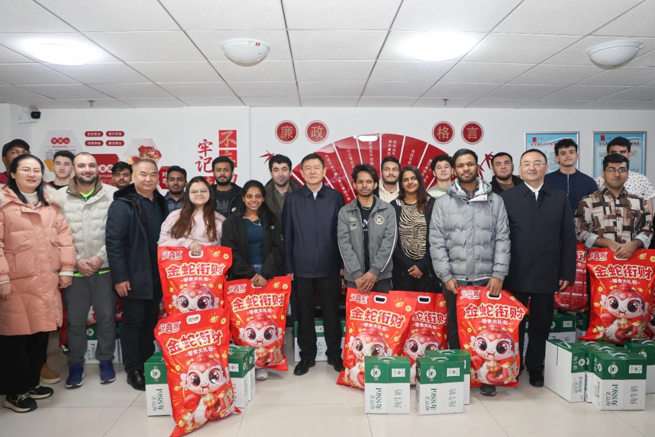 校党委书记柴林,校党委常委、副校长木胡牙提·乌拉斯汉为国际教育学院的在校留学生送上新春祝福