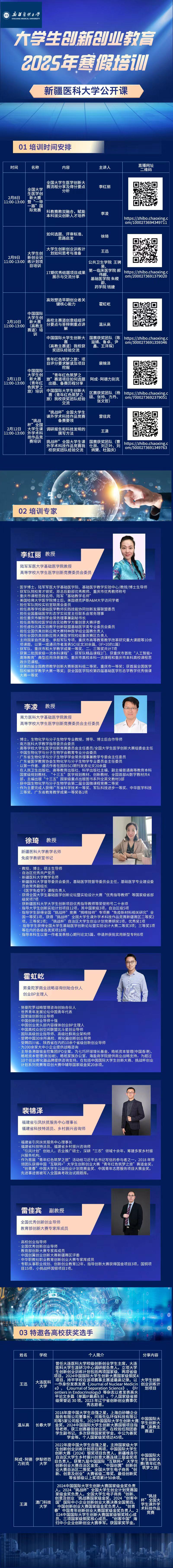 本次培训内容包含大学生创新创业训练计划项目、全国大学生医学创新大赛暨“一带一路”国际竞赛(原全国大学生基础医学创新研究暨实验设计论坛)、中国国际大学生创新大赛、“挑战杯”全国大学生课外学术科技作品竞赛,具体安排如下: