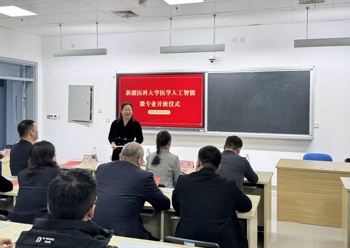 beat365中文官方网站副校长刘涛在开班仪式上致辞,表示医学人工智能作为医学与人工智能深度融合的新兴领域,正深刻改变着医疗行业。它打破了传统医学的局限,为疾病诊断、治疗手段健康管理等带来革命性突破。医学人工智能微专业的开设是学校顺应“新医科”发展,积极响应医学教育创新需求的重要举措。她结合当前DeepSeek等先进技术,强调人工智能在医学影像分析、辅助诊断、药物研发等领域的突破性应用,提出要通过医学人工智能微专业培养既懂医学又精技术的复合型人才,助力新疆医疗数智化快速发展。