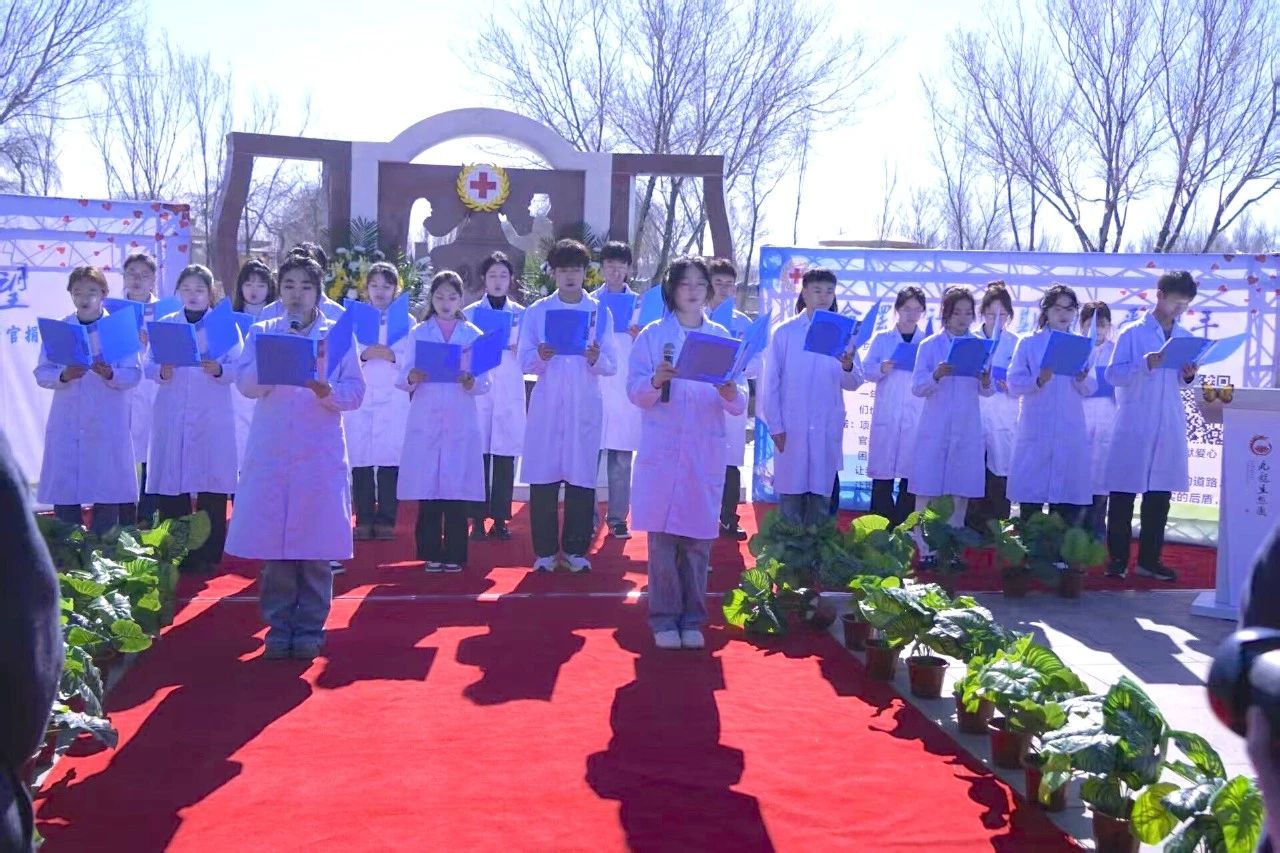 基础医学院人体解剖学教研室与乌鲁木齐市红十字会、乌鲁木齐市九龙生态园共同举办“生命如花·大爱永恒”清明祭扫活动。活动伊始,遗体捐献者家属代表深情发言,表达了对亲人无私奉献的追思与自豪。受捐者代表向捐献者及其家属致以诚挚感谢。基础医学院学生代表通过《生命的回响》诗朗诵,表达了对“无言良师”的感恩之情。全体人员依次向纪念碑敬献鲜花,寄托哀思与敬意。