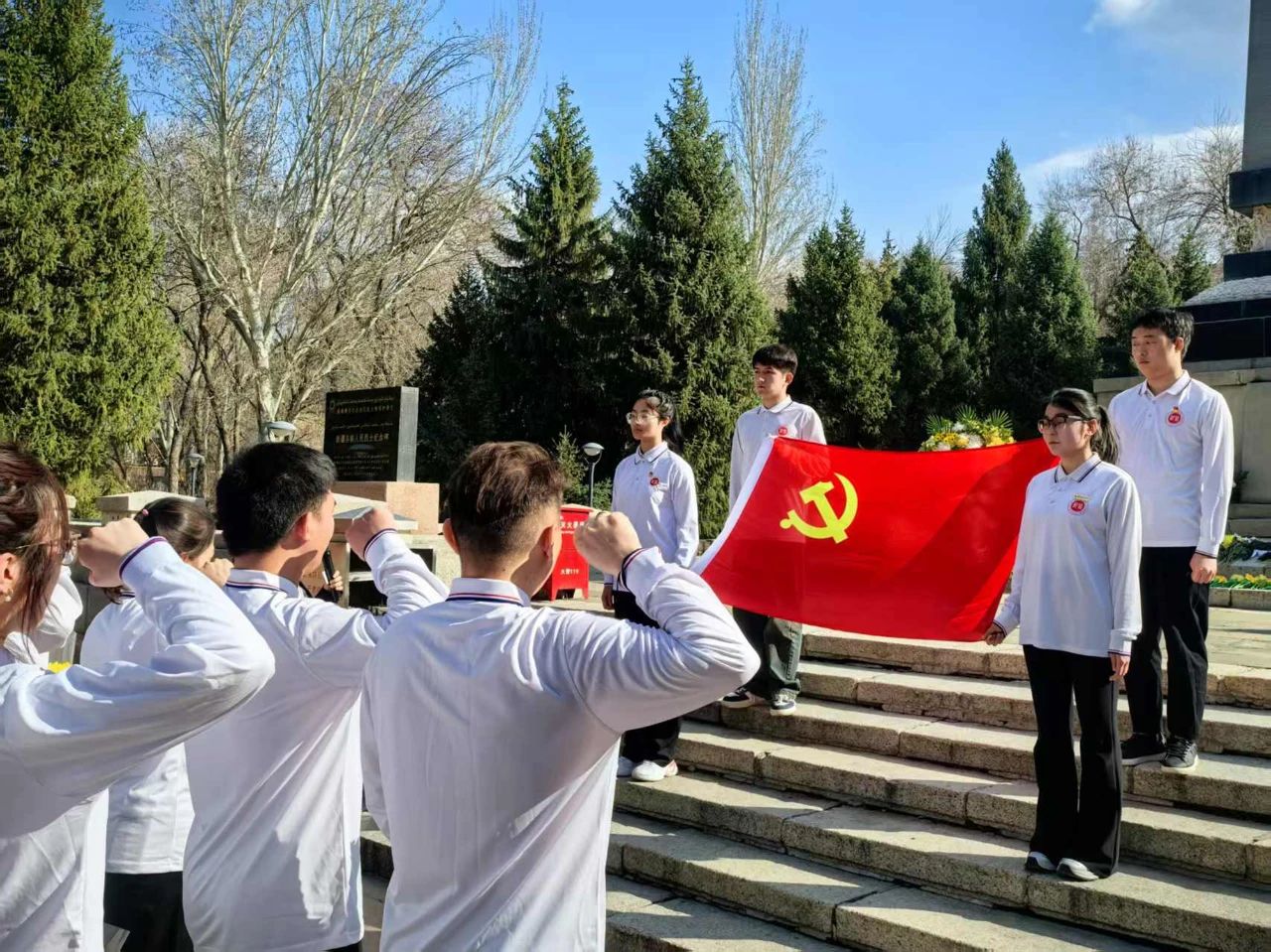健康管理学院和维吾尔医学院开展了“缅怀先烈志·传承爱国情”清明祭扫主题教育活动。在乌鲁木齐人民公园,全体人员肃立默哀,敬献花篮,向革命先烈致敬。同学们深情朗诵追忆先烈,全体党员重温入党誓词。师生依次献花、瞻仰纪念碑,激励大家将爱国之情转化为报国之行,积极践行使命担当。