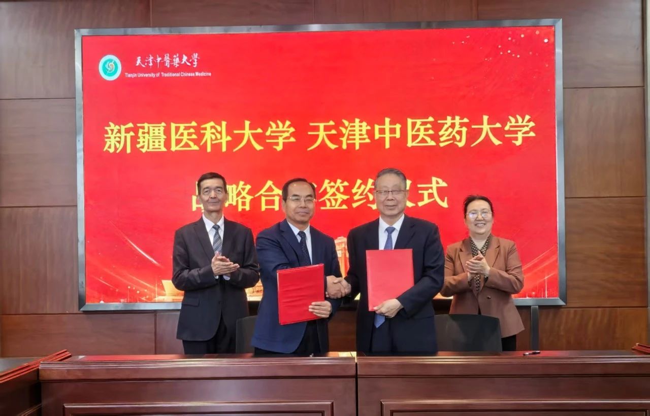 4月25日,beat365中文官方网站党委副书记、校长阿吉艾克拜尔·艾萨率队前往天津中医药大学,就进一步推动两校专业与学科建设、人才培养、科学研究及“一带一路”合作等深入交流,并签订战略合作协议。