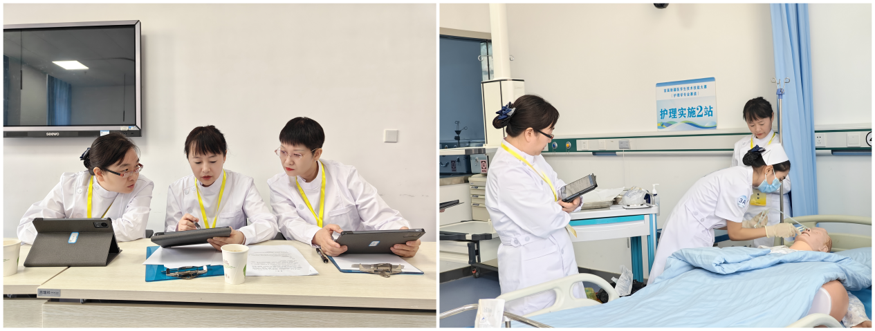 护理学赛道:选手们操作轻柔规范,细致入微,以精湛的护理技术和满满的爱心,处处体现着对患者的关怀,充分展现出了专业且温暖的一面,诠释着护理学的专业内涵与人文精神。