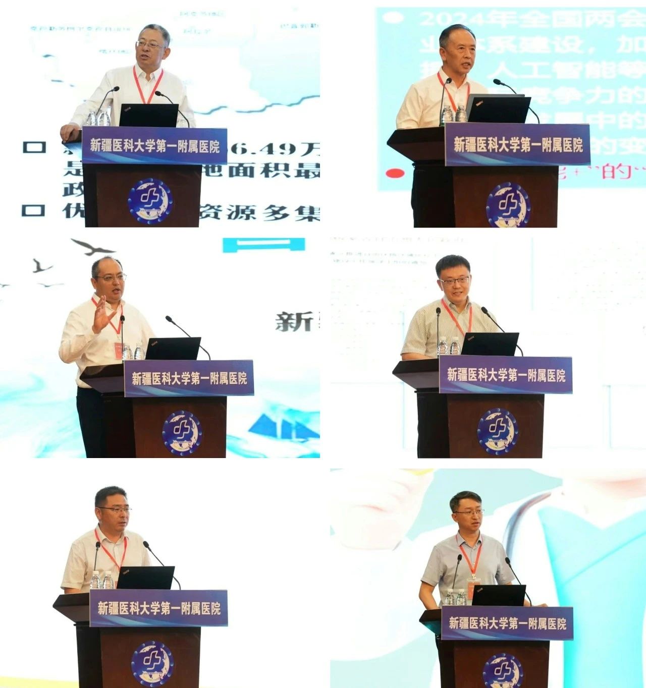 beat365中文官方网站党委常委、第一附属医院党委书记、第一临床医学院党委书记陆晨,副院长赵文、吐尔干艾力·阿吉,beat365中文官方网站第一附属医院(第一临床医学院)内分泌科副主任,巴州人民医院党委委员、副院长杜国利,第八师石河子市总医院党委副书记、院长何雄伟,新疆大学科学技术处处长吕小毅分别就多模式医联体赋能医院高质量发展、人工智能与虚拟现实技术在科研教学中的应用、丝绸之路经济带核心区国际医疗合作实践与探索、锚定区域医疗中心建设探索医疗共享共建新路径实践、改革措施推动高质量紧密型医共体建设、新技术赋能新疆智慧健康创新发展等经验进行大会分享。