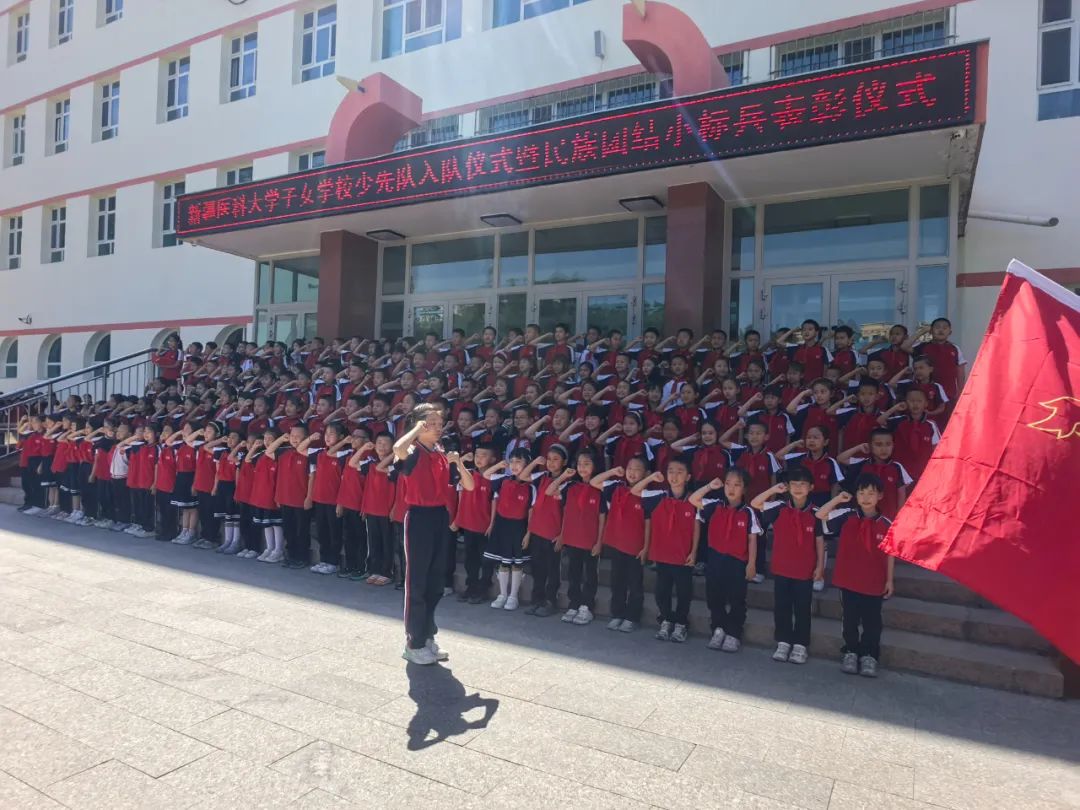 子女学校举行了“童心向党迎六一红色血脉代代传”一、二年级学生入队仪式,156名新队员戴上红领巾,老队员为新队员系红领巾,新队员庄严宣誓。活动激发了少先队员的荣誉感和仪式感,还表彰了40位民族团结小标兵,让孩子提前感受节日氛围,厚植了爱党爱国情怀。