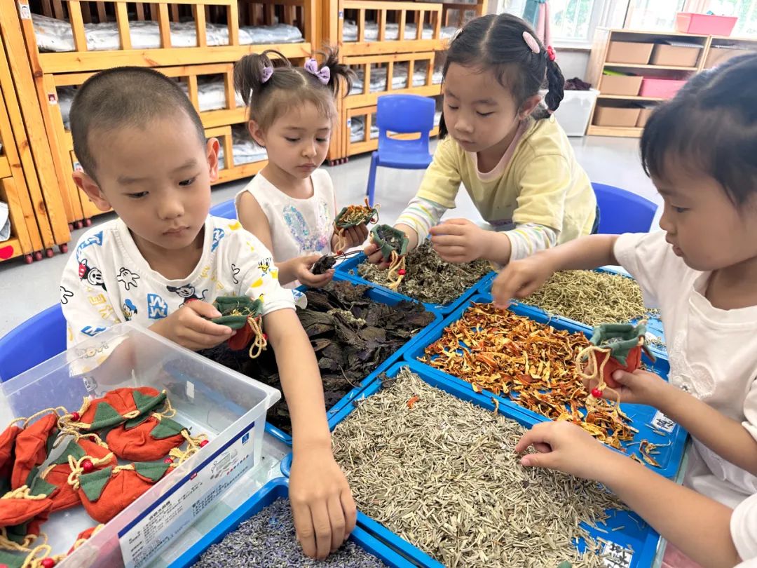“六一”邂逅端午,幼儿园也开展了别具匠心的传统文化体验活动。孩子们制作艾草香囊,聆听屈原的爱国故事,诵读端午童谣。缕缕艾草香中,文化传承不再是抽象符号,而是化作孩子们可触可感的记忆,让文化自信在粽叶飘香中代代相传。