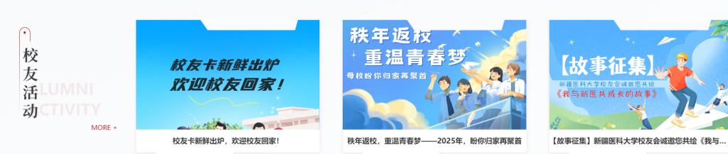 与新医校友小程序无缝对接,做好校友返校、校友活动组织、校友卡申领、档案查询等服务,让母校关怀触手可及。