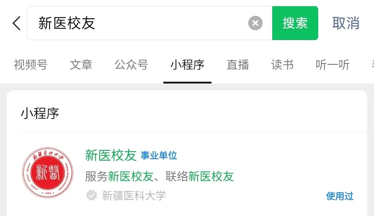 方式二:通过微信直接搜索“新医校友”,点小程序进入。