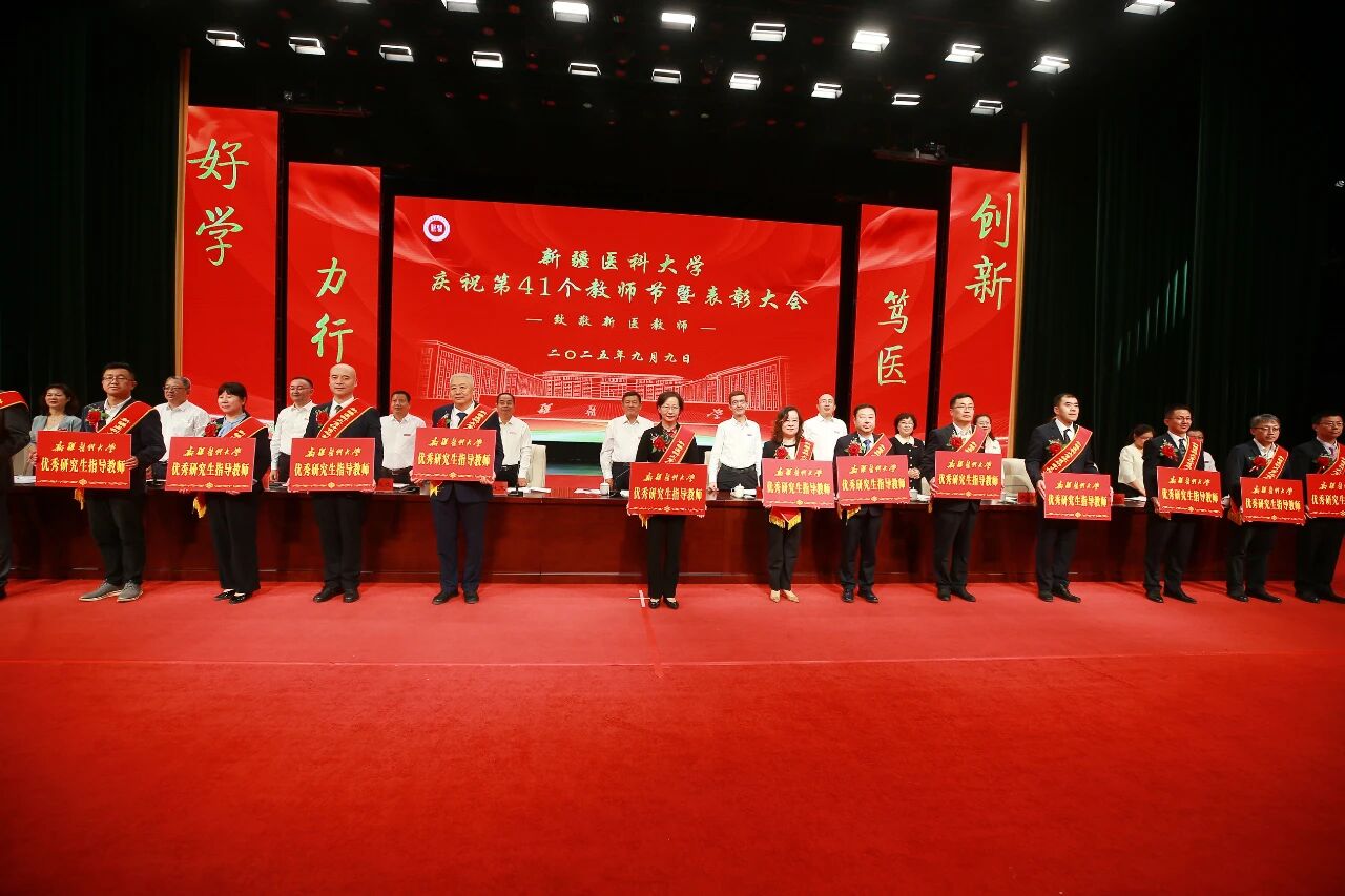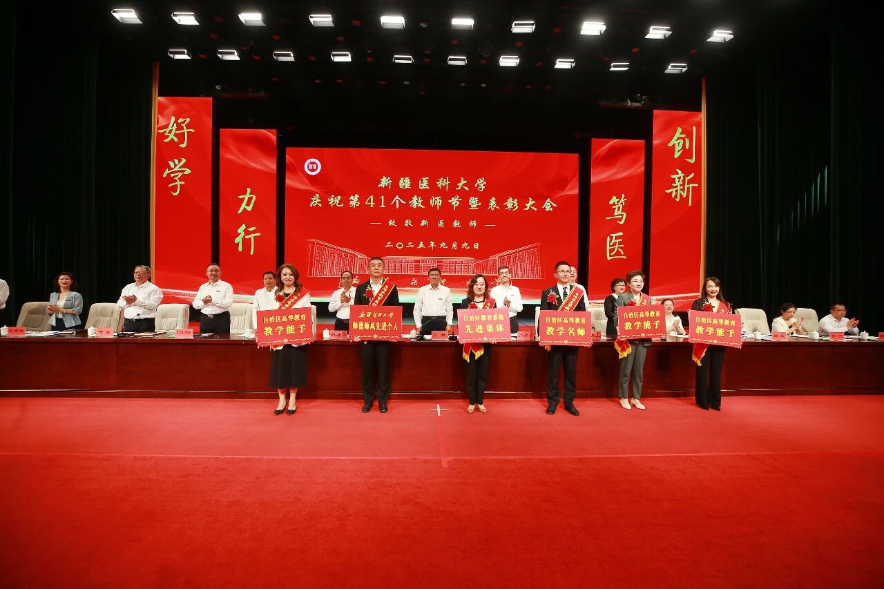 柴林在讲话中充分肯定了一年来广大新医教师在落实立德树人根本任务、推动学校高质量发展中所作的贡献,同时深入分析了学校发展面临的挑战,勉励全体教师牢记“为党育人、为国育才”的初心使命,大力弘扬教育家精神,当好学生成长的引路人,为培养德智体美劳全面发展的社会主义建设者和接班人,为新疆医疗卫生教育事业和学校高质量发展做出新的更大贡献。一是做理想信念的坚守者,筑牢育人之魂。广大教师要坚持用习近平新时代中国特色社会主义思想铸魂育人,牢牢扭住新疆工作总目标,持续推进课程思政建设,把家国情怀与专业教学深度融合,讲好大学和附属医院服务新疆各族人民健康的光荣历史,引导学生自觉融入到强国建设、民族复兴伟业的实践中,扎根边疆、奉献国家。二是做精医尚学的践行者,提升立业之能。要主动投身教育教学改革,围绕人民生命健康和国家对新疆提出的“五大战略”定位,推动教学科研双融双促,把论文写在大漠边疆,把手术台搭在雪山脚下,培养具有创新能力的卓越医学人才。三是做仁心仁术的传承者,恪守职业之本。全校教职员工和医务工作者要以身作则、言传身教,坚守师德底线、学术道德底线,不碰师德红线,为学生树立起看得见、摸得着的行为标杆。四是做亦师亦友的守护者,铺就成长之路。要帮助学生明确各阶段学习重点和发展方向,合理规划学业和职业生涯。尊重学生的个性差异,因材施教、扬长避短,让每一名学生都能找到适合自己的成长方向,在医学事业的广阔天地中各展其长、各尽其才。