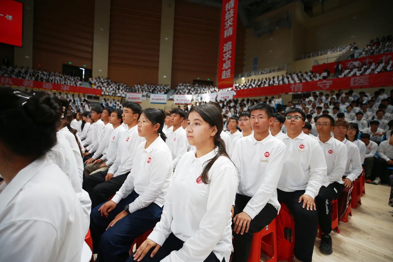 校党委书记柴林出席开学典礼,为新同学讲授“开学第一课”。校党委副书记、校长阿吉艾克拜尔·艾萨主持开学典礼。