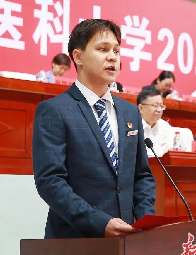 研究生新生代表、第一临床医学院外科学专业达尼亚尔·迪力穆拉提同学分享了自己从本科到研究生阶段在新医的成长与感悟,呼吁同学们将个人成长融入新疆医药卫生事业建设和发展中。本科生新生代表、临床医学(“5+3”一体化)2025-2班隋朴祯同学则从家乡跨越千里来到新疆的求学经历出发,表达了对医学事业的热爱与坚守,并代表全体新生要立志勤学笃行、不负时代、不负韶华。