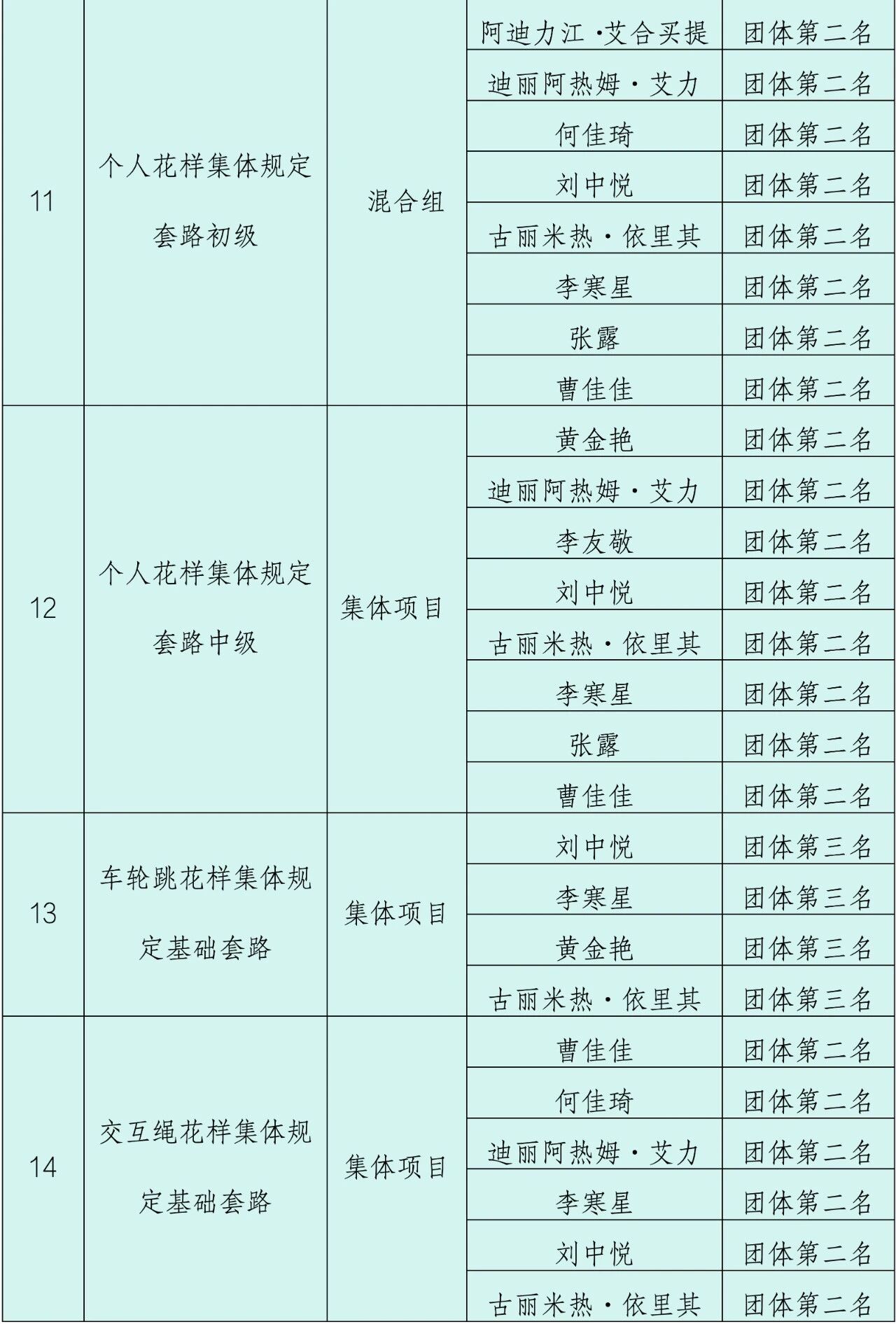 据悉,本届校园跳绳联赛由自治区教育厅主办,高校组共分大学生甲、乙、丙组3个组别,涵盖速度赛、规定赛两大类共16个单项及集体项目,赛事采用“预决赛同场制”,参照全国跳绳竞赛规则评分。共有来自全疆各地州、高等学校的38支代表队、500余名运动员与教练员报名参赛,以绳会友,激情竞逐。