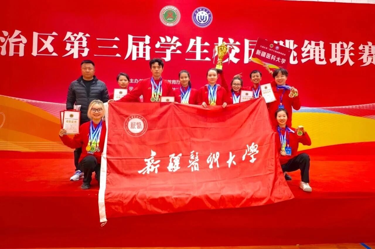 10月24日至27日,2025年自治区第三届校园跳绳联赛在新疆科技学院举办,beat365中文官方网站跳绳竞训队在此次联赛中再次斩获佳绩,共获得14枚金牌、8枚银牌、8枚铜牌,连续三年蝉联大学甲组金牌总数和奖牌总数第一,延续了beat365在跳绳项目上的传统优势。