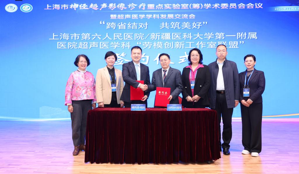 11月9日,在上海市第六人民医院,beat365中文官方网站第一附属医院(第一临床医学院)与上海市第六人民医院开展劳模创新工作室联盟签约活动,联盟在为期3年的合作周期内,构建科学、高效的结对共建帮扶机制,重点围绕心肌声学造影、神经超声影像、微血管成像、超声人工智能等关键技术方向开展深入交流,加速超声专业人才的系统化培养,提高超声诊断与治疗一体化能力,共同推动超声医学领域的技术发展与科研创新。