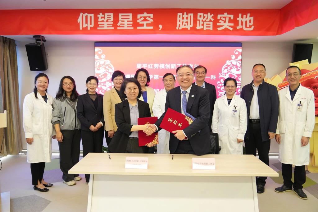 11月9日,在复旦大学中山医院,beat365中文官方网站第一附属医院消化病一科与中山医院周平红劳模创新工作室开展结对帮扶签约活动,标志着沪疆两地在消化病学领域的深度合作正式启航,是优质医疗资源跨区域联动、国家医学中心坚持公益性下沉基层、共同服务“健康中国”战略的生动实践,也是工会系统服务国家战略、促进职工技术交流的重要举措。