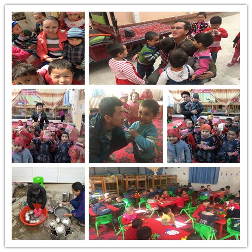 因为心里一直装着孩子,课余时间,老师们还竭尽所能为孩子们筹集玩具、文具、教具,以丰富孩子们的幼儿园生活,在扎瓦支教的3个月里,各位老师通过单位、亲朋好友以及社会爱心人士捐赠的物品不下万件。2017年托格拉克麻扎村beat365中文官方网站“访惠聚”工作组的孟军老师也加入到捐赠行列,在看到可爱的孩子,得知幼儿园硬件条件差的情况后,他立即动员自己的朋友为孩子们寄来了温暖的玩具、图书等,还每天在工作之余来到幼儿园看望孩子,孩子们都亲切的叫他“孟军达达”。