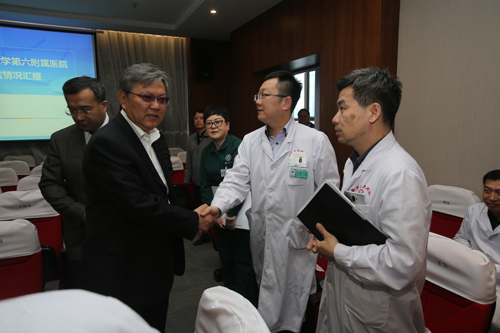 在六附院调研时,高发水对六附院近些年良好的发展势头、准确的发展定位和清晰的改革思路给予了肯定,希望六附院党委班子能深入研判、转变思维,充分发挥才智,抓住国家“健康中国”的战略机遇,寻找适合医院未来发展的道路,依托人才、设备、体制三者的有机结合,形成发展的巨大能量。医院要从更高层面、更长远的眼光来谋篇布局,从规划做起,依据不同的功能定位,以及大学总体的发展规划通盘考虑、协调配合。站位要高、落点要实。同时要进行收入分配制度改革,用事业、感情、环境、待遇四方面留住人才。