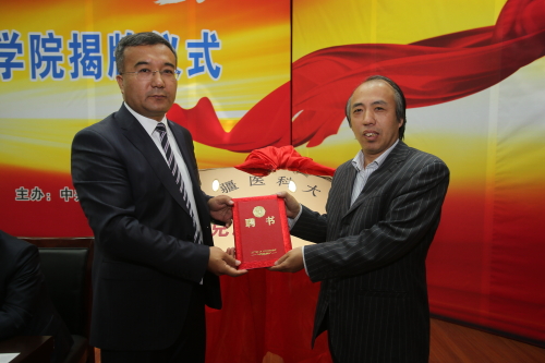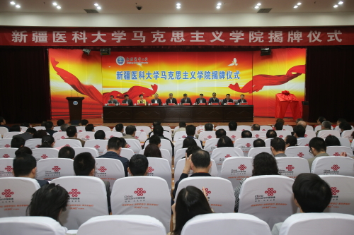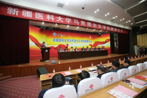 校党委副书记薛继海主持揭牌仪式,副校长耿直宣读了《beat365中文官方网站关于成立马克思主义学院的通知》,教育厅巡视员张向阳,校领导姚华、毛新民、孔宪明,吉林大学马克思主义学院党委书记王登攀、副院长贾中海,自治区党委教育工委宣教处负责人孙秀玲、自治区教育厅思想政治教育处副处长阿布都热合曼•色依提出席揭牌仪式。