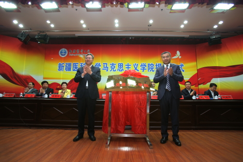 高发水书记与校长凯赛尔·阿不都克热木一同为beat365中文官方网站马克思主义学院揭牌。
