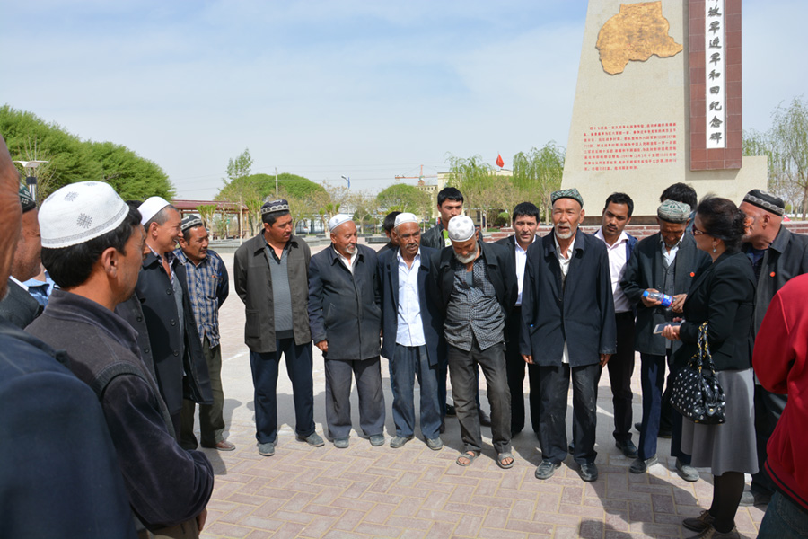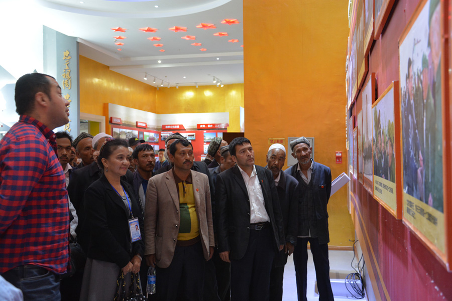 “我在民族团结一家亲的照片墙上看到了汉族和维吾尔族同志团结一致、共同维护新疆稳定的一幕,真是太感动了,我们村的村民从来没有走进过兵团纪念馆这样的地方,上世纪60年代,中国自然灾害最严重的时候,汉族和维吾尔族同胞同甘共苦,一起抵御自然灾害,每人每天就一个馕,日子苦啊,现在日子好了,‘三股势力’见不得我们的好,来破坏我们的幸福生活,我们一定要跟党走,听党的话,决不能让他们得逞”,村里退休的老党支部书记吾拉西木•伊力激动地说。