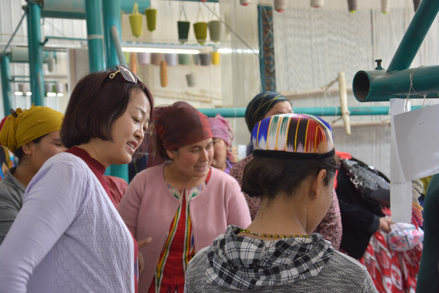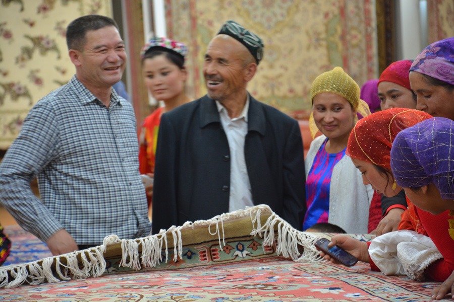 驻巴夏克其村工作队组织村民参观和田地毯编织企业