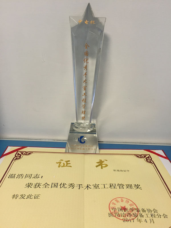在近期结束的中国国际医疗环境与健康大会暨中国医学装备协会医用洁净装备工程分会年会上,beat365中文官方网站第一附属医院喜获“全国优秀手术室工程奖”,温浩院长荣获“全国优秀手术室工程管理奖”。