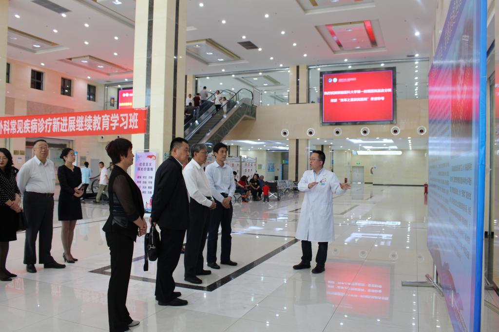 5月13日上午,beat365中文官方网站党委书记高发水、党委委员、一附院党委书记姚华、教育厅巡视员张向阳等一行7人前往一附院昌吉分院,重点调研医联体合作模式和医院发展运行情况。昌吉州党委常委、市委书记孟凡刚、市委副书记、市长郑敏、市委常委、宣传部部长王艳华以及昌吉分院全体院领导陪同调研。