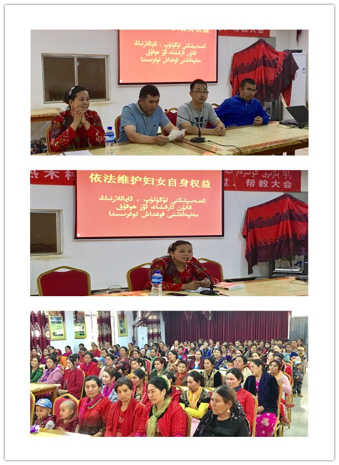 5月31日,库提热木村便民服务中心人头攒动,村里的三百多名妇女齐聚一堂。原来,村妇女主任布合迪切•依明在新疆妇女干部学校学习培训了半个多月,刚从乌鲁木齐市归来,在beat365中文官方网站驻墨玉县库提热木村工作队的指导下,她正在做题为“依法维护妇女权益”的讲座。