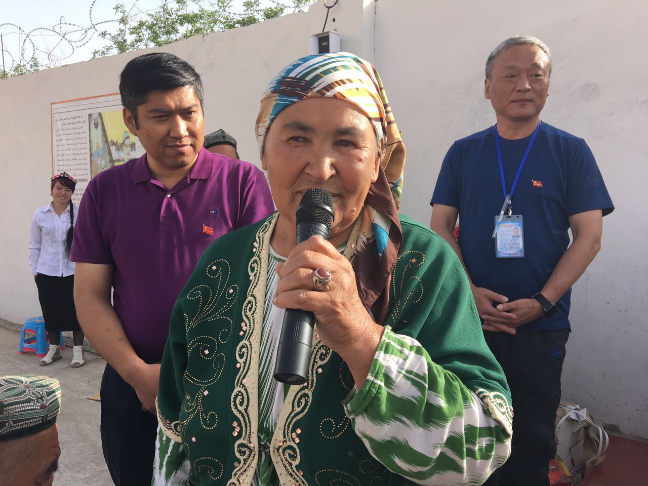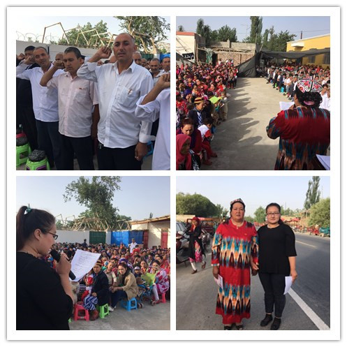 6月12日早晨,在托格拉克麻扎村举行的升国旗仪式上。有着十多年党龄的农民党员布海迪且汗·麦麦提在鲜红的五星红旗下,为村民们做“感党恩、跟党走”的主题宣讲。她说:“我是一个普通的母亲,而且是一个农民党员。我亲眼目睹了咱们这些年的发展变化。我们现在的日子多好,党的各项惠民利民政策让我们的日子越过越红火。我深切感受到党和政府惠民政策带来的各项实惠。大家一定要坚定跟党走的信心和决心,感恩党、听党话、跟党走。”