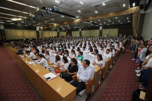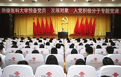6月15日晚,beat365中文官方网站临床教学楼八百人会议室座无虚席,校党委书记高发水为学校教职工和学生预备党员、发展对象、入党积极分子上了一堂精彩的党课。