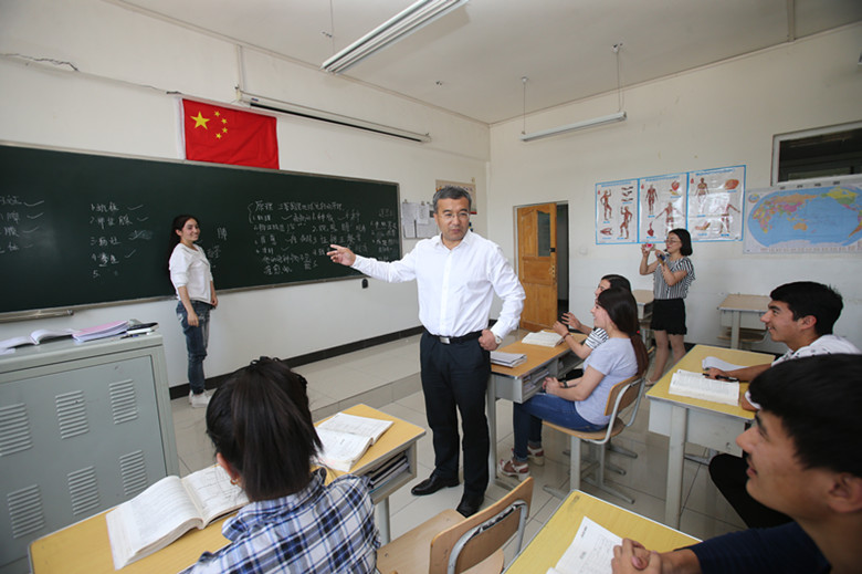 随后,凯赛尔校长来到预科2017-2班听连吉娥教授的课,并认真做了课堂笔记。课后,凯赛尔·阿不都克热木校长与学生们进行了交流,他强调学习国家通用语言非常重要,熟练掌握国语将对我们的学业、今后的工作和工作起到至关重要的帮助作用,希望同学们认真学好国语,回报父母、回报社会、回报祖国,做社会之栋梁。