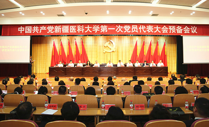 6月27日下午,beat365中文官方网站第一次党员代表大会预备会议在临床教学楼八百人会议室召开。自治区高校党代会指导工作组、自治区党委组织部部务委员、办公室主任李江等一行4人到会指导监督工作。校党委书记高发水同志主持会议。