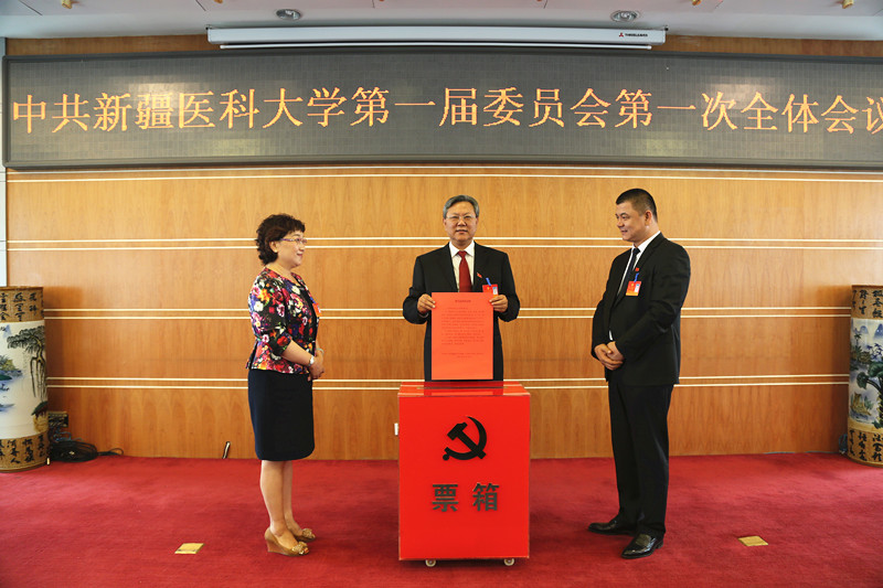 高发水指出,按照自治区党委的要求,要通过这次党委班子换届,“换”来风清气正的好局面,“换”出奋发进取的新气象。新一届党委领导班子深感责任重大、使命光荣。他就校党委班子今后的工作提出几点意见,一是牢固树立“四个意识”,忠诚党的教育事业。自觉在思想上政治上行动上与以习近平同志为核心的党中央保持高度一致。要坚决听从党中央的号令,坚持以党的旗帜为旗帜、以党的方向为方向、以党的意志为意志,把学校建设成为党的领导的坚强阵地。二是始终坚持社会主义办学方向,全面贯彻党的教育方针。要旗帜鲜明地坚持马克思主义在高校的指导地位,切实把高校为人民服务、为中国共产党治国理政服务、为巩固和发展中国特色社会主义制度服务、为社会主义现代化建设服务的要求落到实处,让马克思主义主旋律在高校唱得更响。要切实担负起管党治党、立校办学的主体责任,坚持和完善党委领导下的校长负责制,充分发挥党委总揽全局、协调各方的领导核心作用,推动学校事业新发展,开创学校工作新局面。三是始终坚持立德树人,切实抓好学校意识形态领域工作。要强化责任担当,坚决查处“两面人”,旗帜鲜明讲政治,义不容辞讲担当,引领广大师生员工和医务人员当好做政治家办教育的践行者、社会主义办学方向的捍卫者、先进思想文化的传播者、学生健康成长的引领者,坚决与“三股势力”作争锋相对的斗争,寸土必争、寸土不让,坚决打赢意识形态领域反分裂反渗透这场硬仗。四是始终坚持紧紧围绕总目标,确保学校和谐稳定。要把维护校园稳定作为压倒一切的政治任务、重于泰山的政治责任,时刻提高警惕,毫不松懈,各项维稳措施做到无空白、无盲点、无缝隙,夯实校园稳定的基础,打好反恐维稳“组合拳”,打造和谐稳定的校园环境。五是始终坚持改革创新,推动办学办医质量迈上新台阶。新一届党委领导班子将牢固树立“五大发展理念”,以办好党和人民满意的高等医学教育为宗旨,充分发挥地缘优势和学科特色,坚持现代医学与传统医学并举,走内涵式发展的道路。同时坚持共建共享,切实把发展落实到改善民生上、落实到增进团结上,落实到建设幸福和谐的beat365中文官方网站上。六是始终坚持清正廉洁,营造风清气正的政治生态。党委领导班子成员将认真汲取发生在身边的惨痛教训,带头严格要求自己,切实履行“两个责任”,坚持“一岗双责”。牢固树立“底线红线高压线”意识,始终保持共产党人的政治本色和廉洁操守,形成良好的环境氛围,让干净的人有更多干事的机会,让干事的人有更干净的环境,让那些既干净又干事的人能够心无旁骛施展才华脱颖而出,真正把全体师生员工和医务人员的精气神引导到改革发展稳定各项事业上来。