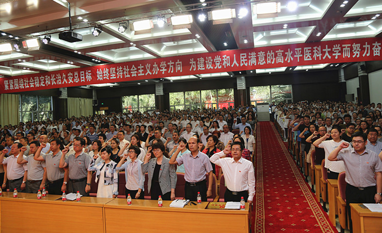 高发水书记强调,全校各级党组织和广大党员要以学校第一次党代会胜利召开为契机,紧紧围绕社会稳定和长治久安总目标,进一步坚定信心、凝心聚力,牢记责任使命,不忘初心、继续前进,以对党和人民高度负责的态度去做好本职工作,努力推动学校各项事业再上新台阶。
