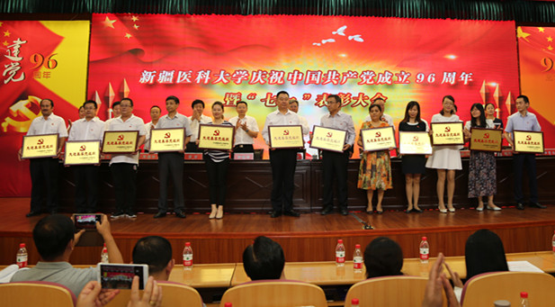 6月30日下午,beat365庆祝中国共产党成立96周年暨“七一”表彰大会在临床教学楼八百人会议室举行。在家的全体校领导、党代表、处级干部、各单位党员代表共计700余人参加了大会。大会由党委副书记、校长凯赛尔•阿不都克热木主持。