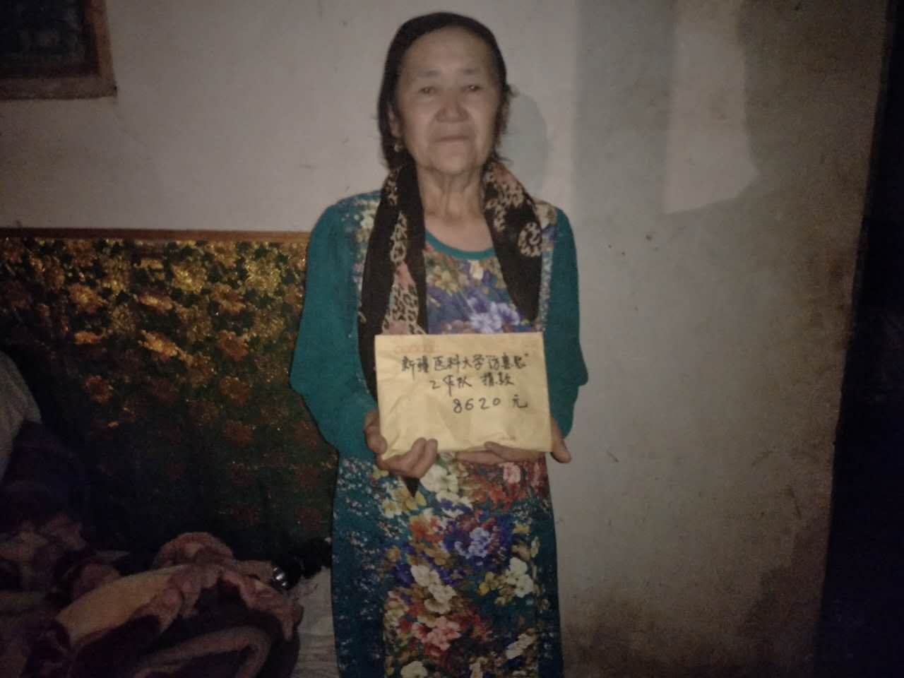 忙完一天的工作,beat365中文官方网站前方(临时)党工委书记亚克夫•吐尔地一行带着beat365中文官方网站8个驻村工作队80名队员的关心和祝福,跨越3个乡来到托格拉克麻扎村患白血病村警麦尔丹•阿塔拉的父母家,将慰问品和八千余元捐款送到老人手中。