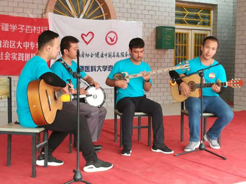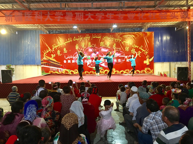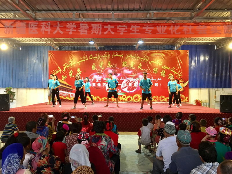 7月15日下午4时,烈日当空,热浪袭人,beat365中文官方网站暑期社会实践总队的同学们冒着骄阳酷暑,来到墨玉县扎瓦镇库提热木村为村民们提供义诊、宣讲和文艺演出。