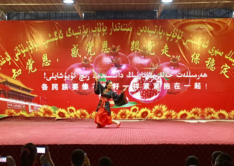 晚上21时,beat365中文官方网站暑期社会实践总队为给村民们献上了一台精彩纷呈、洋溢青春律动和现代文化气息的文艺演出。随着热辣激扬的旋律响起,全体志愿者闪亮登场,激情演绎节奏明快、律动十足的现代舞,拉开了整场晚会的序幕,展示着当代知识青年们蓬勃向上的精神面貌,带给村民们耳目一新的感觉;热烈活泼、特色鲜明的维吾尔舞蹈,节奏明快的热瓦普、手鼓合奏,引得众人连连喝彩,台下响起经久不息的掌声;伴随着一段悠扬缠绵的汉风古曲,身穿秦汉风格、炽焰如火、长袍罗衫的舞者翩翩而至,舞姿婀娜,眉宇含情,演绎了秦汉时代宫廷舞蹈的曼妙优雅和汉文化的深邃意境……许多村民掏出手机录下影像,村民们无不凝神观看,被这一段风格迥异的汉风舞蹈深深吸引,并报以经久不息的掌声;主题宣讲《毛主席与库尔班大叔》讲授了党的国家领导人对新疆各族人民的殷切关怀和深情厚谊,讲授了新疆各族人民爱国、爱疆,维护祖国统一和民族团结的优良传统,号召村民们自觉遵纪守法,感党恩、听党话、跟党走,为新疆工作总目标尽一份力,得到现场村民们热烈的掌声回应。集体舞《民族团结一家亲》生动地演绎了新疆各族群众“三个离不开”,相亲相爱,和睦相处,共同建设美好家园的主题,得到村民们热烈的回应,许多村民纷纷登台,与各族同学们跳起麦西来普,用欢乐的舞步、畅快的呐喊,表达自己对维护民族团结一家亲、建设大美新疆的期待和支持!(殷冀锋 驻库提热木村工作队)