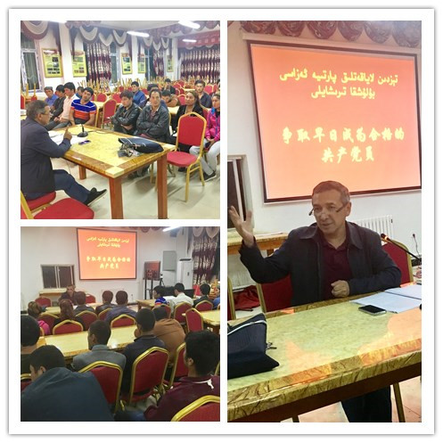 晓开提•依不拉音结合党的十九大召开前夕,自治区党委对于新疆维护稳定工作的重大部署以及和田地区“揪两面、拍苍蝇、正风纪”百万干部群众大行动的一系列要求,启迪村里的共青团员们切实提高思想认识,提升人生价值,积极向党组织靠拢;要求入党积极分子们端正自己的入党动机,在政治思想上、行动上自觉与党中央保持一致,注重加强党的知识的学习,不断增强党性修养,在当前反恐维稳、全区干部职工发声亮剑的背景下,牢固树立正确的人生观、价值观和世界观,在政治上不断进步成长,坚定政治立场、筑牢思想防线,以实际行动接受党组织的考验。听讲的村民们一致表示,要以党员的标准严格衡量自己的言行,自觉履行党章规定的义务,在村里处处争当表率,始终做到知党恩、感党恩、听党话、跟党走,自觉接受党组织考察,用实际行动向党组织靠拢,争取早日加入中国共产党。