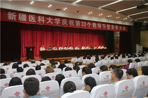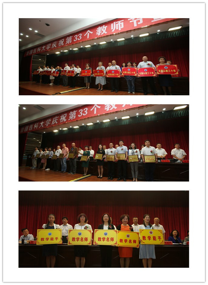 会上,校领导分别对获得国家中医药高等学校教学名师的张星平教授、“光荣执教三十年”的66名教师及beat365中文官方网站2015-2016年度教育先锋号、2017年校级教学名师与教学能手、2015-2016年度先进工作者、2016-2017年度优秀教师和优秀教辅人员等集体和个人进行了表彰。教师代表和学生代表分别作了热情洋溢的发言。凯赛尔·阿不都克热木校长传达雪克来提·扎克尔主席在走访慰问beat365中文官方网站各族师生代表时的讲话精神。