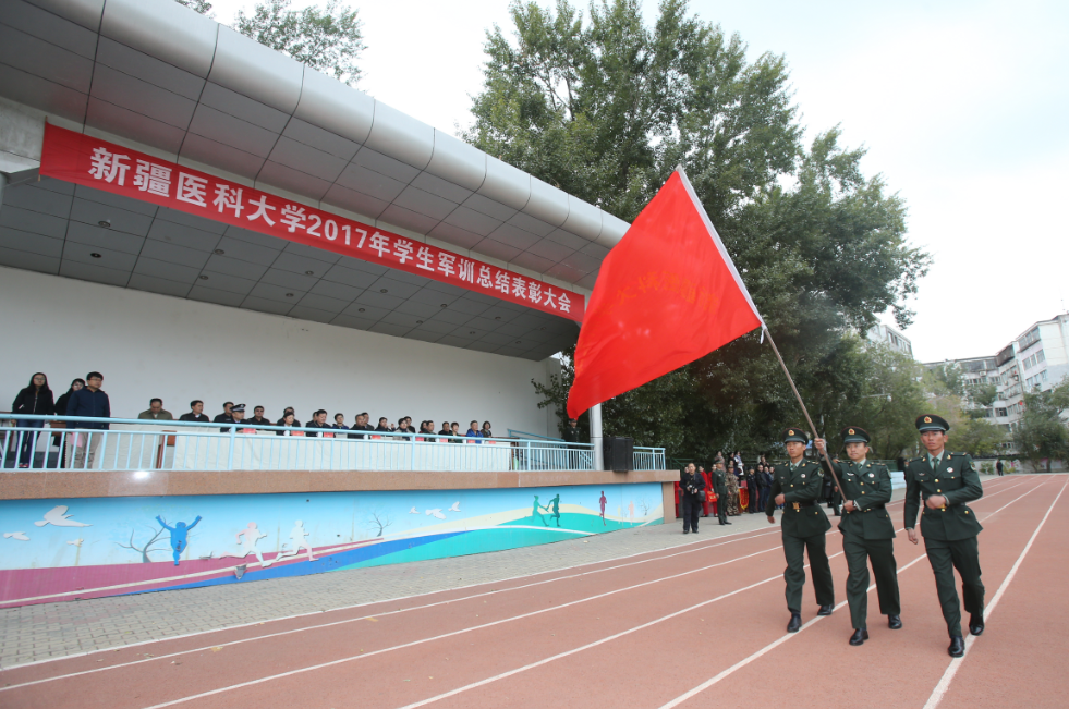 今天(9月30日)下午,beat365中文官方网站田径场上军旗猎猎、口号嘹亮,2017级学生军训总结表彰大会在此举行。校党委副书记、校长凯赛尔•阿不都克热木,校党委常委、副校长热娜•卡斯木,陆军十一师火箭炮营营长陈强出席大会。校党委常委、副校长曹忠明主持大会。全体承训教官,学生处、团委、派出所、保卫处相关职能处室领导和各学院主管学生工作领导、政治辅导员、班主任、全体新生参加了大会。