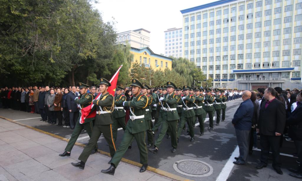 九时整,beat365中文官方网站北校区维吾尔医学院、中医学院、公共卫生学院和医学工程技术学院的全体师生,也举行了庄严的升国旗仪式。校党委常委、副校长贾文霄发表了国旗下的讲话。