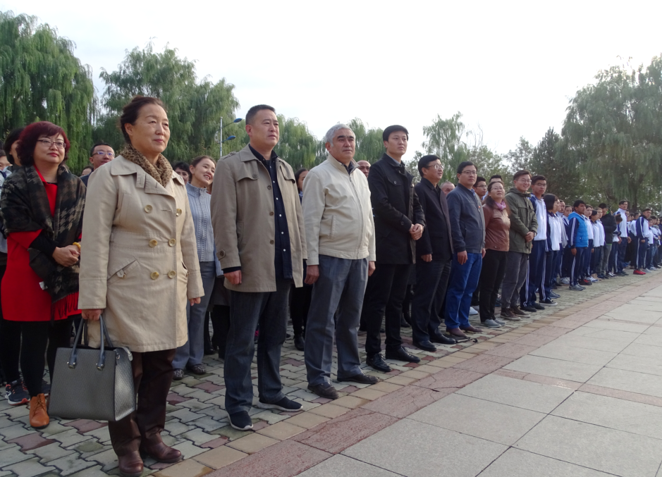 今天一大早,校本部中心广场,各族师生整齐列队、庄严肃立,静静等待护旗方队的到来。9时整,21名国旗班护卫护送着鲜艳的五星红旗步伐矫健地向国旗杆走来。在雄壮的国歌声中,全场师生齐声高唱国歌,注视着五星红旗迎着朝阳冉冉升起。