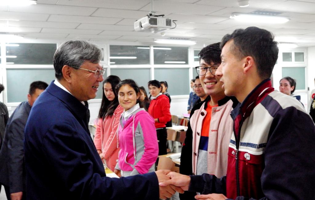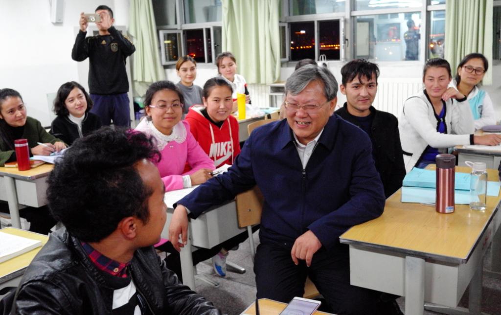 在国庆、中秋双节同庆的日子里,10月2日晚上,校党委书记高发水走进了位于北校区的维吾尔医学院,亲切看望正在上晚自习的2015级1班和2016级1班的同学们,代表校党委向节日期间坚守岗位的教职工和全体同学们送上节日的美好祝愿。高发水强调,看到你们就像看到我自己的孩子一样高兴,你们阳光可爱,充满了希望,是新疆卫生事业的未来。希望你们努力学习、端正思想,积极向党组织靠拢,学校会尽全力帮助你们实现人生理想,力争为国家做出更大贡献。