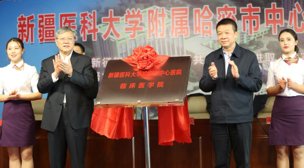 beat365中文官方网站党委书记高发水和哈密市委书记卢蜀江共同为beat365中文官方网站附属哈密市中心医院、beat365中文官方网站哈密市中心医院临床医学院揭牌。