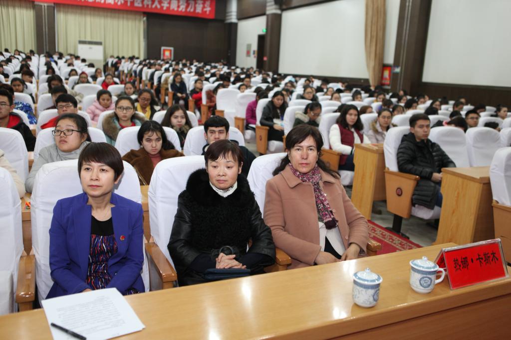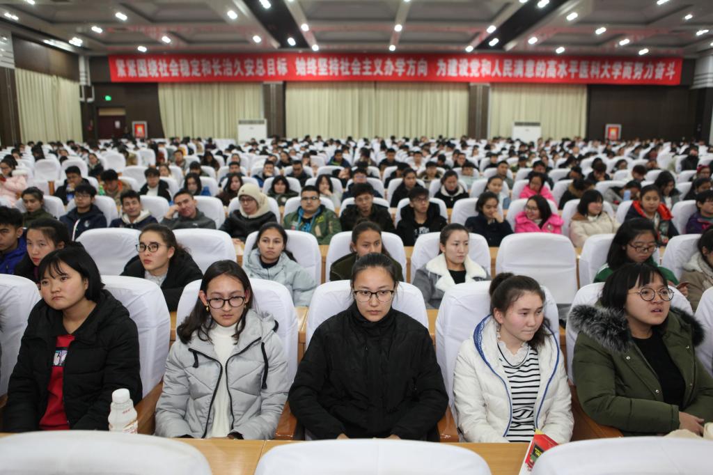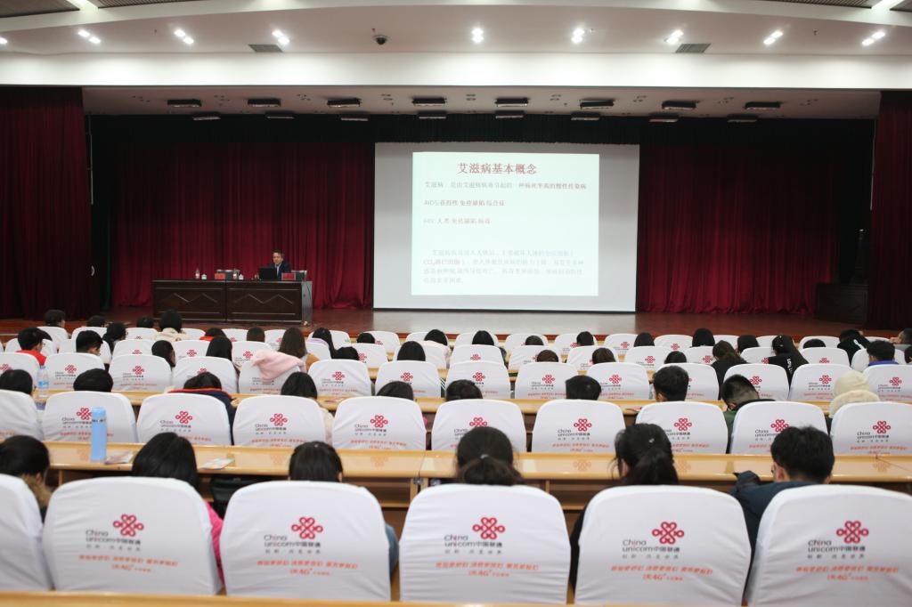 为普及艾滋病防治知识,增强大学生自我保护意识,11月29日晚八点,自治区防治艾滋病工作委员会办公室主任、新疆艾滋病性病防治协会会长、自治区十一届政协委员、beat365中文官方网站硕士研究生导师地力夏提•亚克甫教授为beat365师生作了题为“携手防艾,重在预防”的预防艾滋病知识讲座。beat365中文官方网站副校长热娜·卡斯木,职能部门、相关学院工作人员及学生聆听了讲座。校团委书记马翠主持讲座。