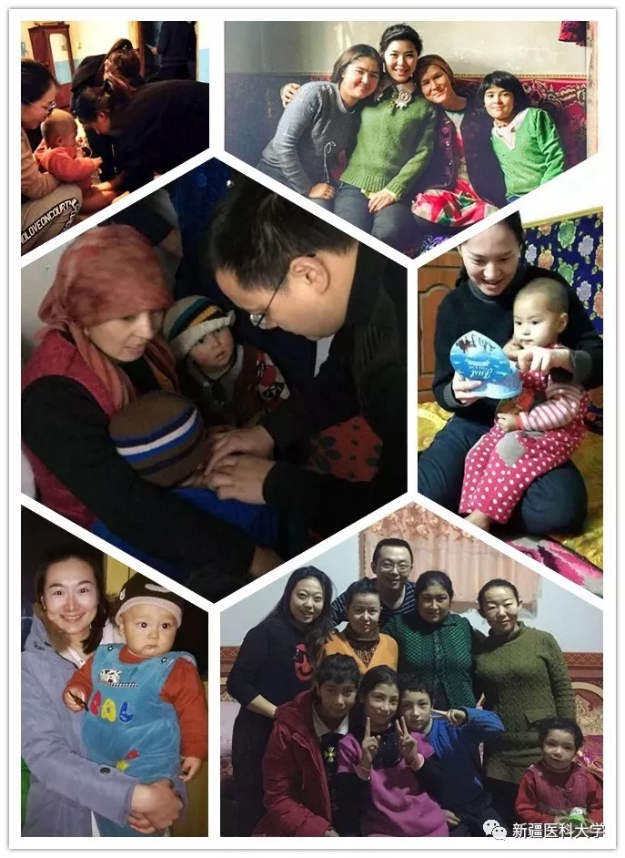 在库提热木村,来自新医大一附院组织干部科的王郁、介入放射科的陈实、手术室的汤婷、透析室的夏热甫古丽和学生科房富利组成了一个5人结亲小组。在结亲干部王郁的亲戚—71岁的亲戚吐热汉•艾力大妈家中时,丰盛的食物让大家眼角湿润。听说结亲干部们要来,吐热汉大妈早早打了馕用布包起来,为结亲干部们准备了自己舍不得吃的香蕉、橘子和干果,将家中最暖和的房间收拾干净,准备好了炉子和几床厚实的被子。